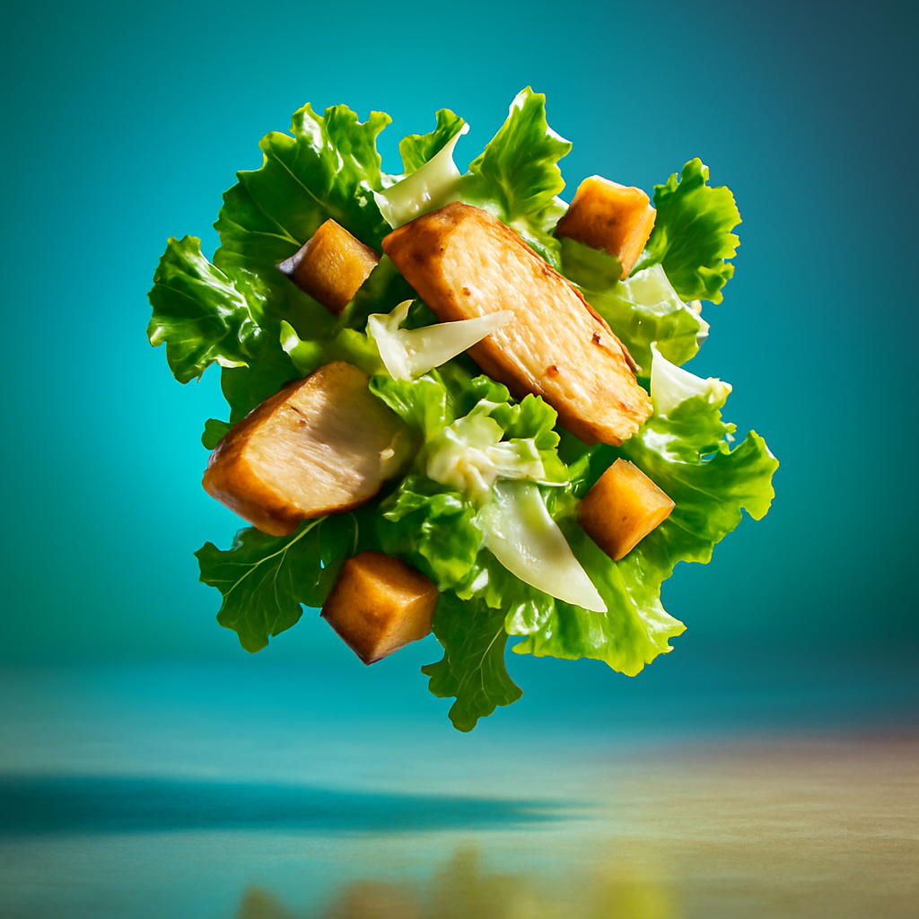 Dynamic Caesar Salad in Realistic Style with Vibrant Background