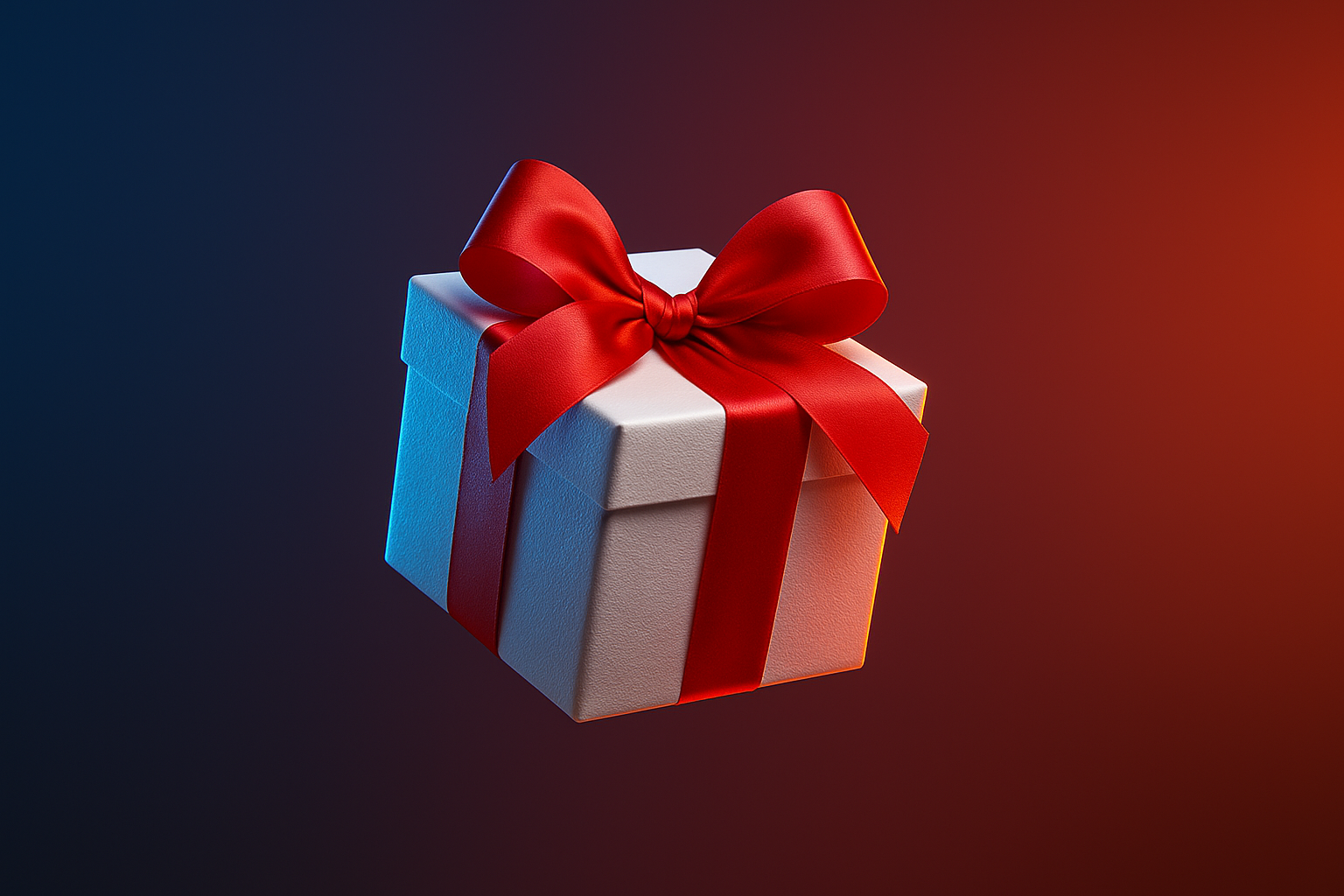 Elegant Gift Box with Red Ribbon on Gradient Background