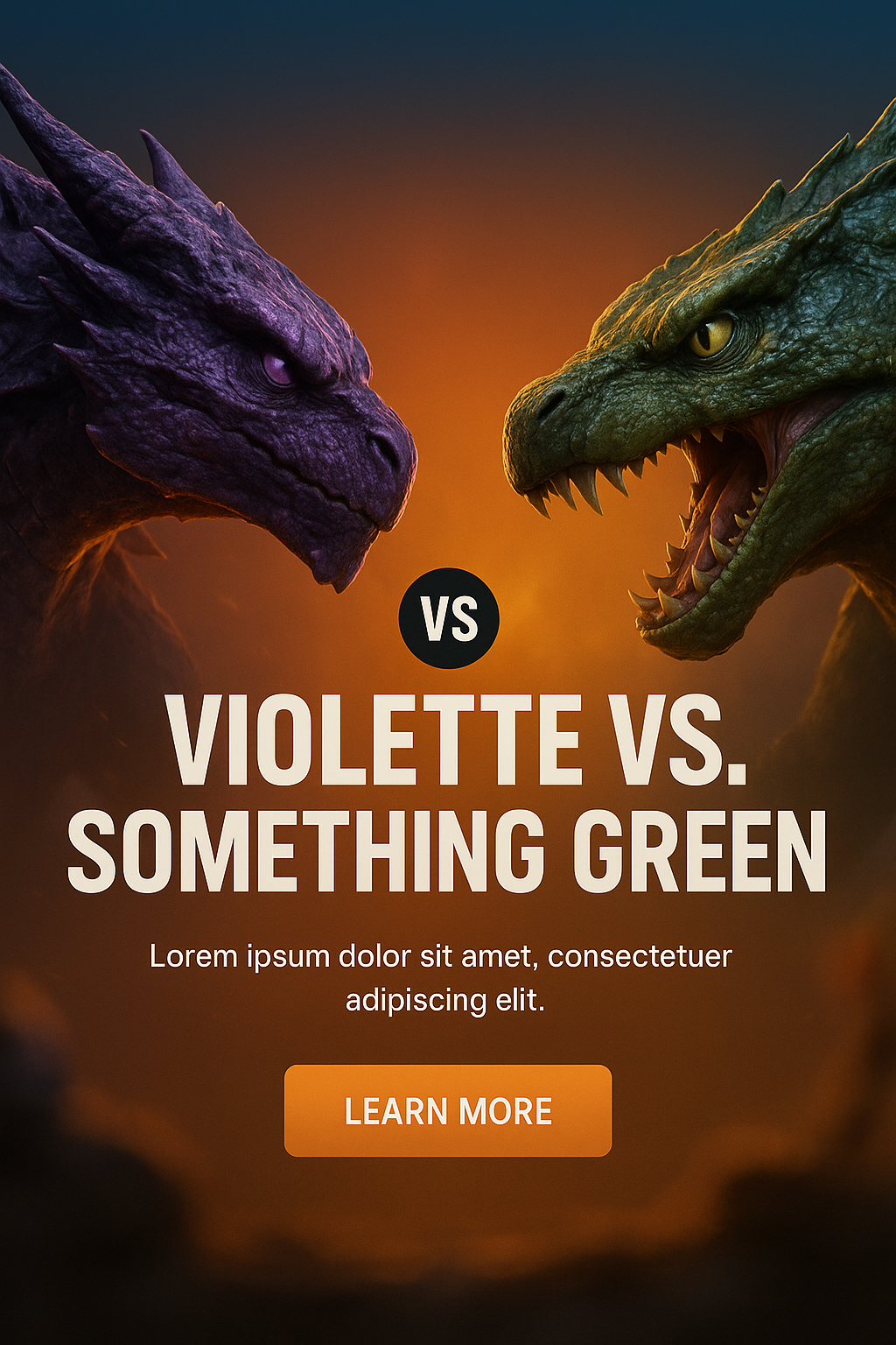 /Collection: /by davooda/Type: PNG/This graphic features a dramatic confrontation between two fantastical creatures, designed as a promotional banner. The intense colors and dynamic lighting enhance its appeal for gaming or movie fans.