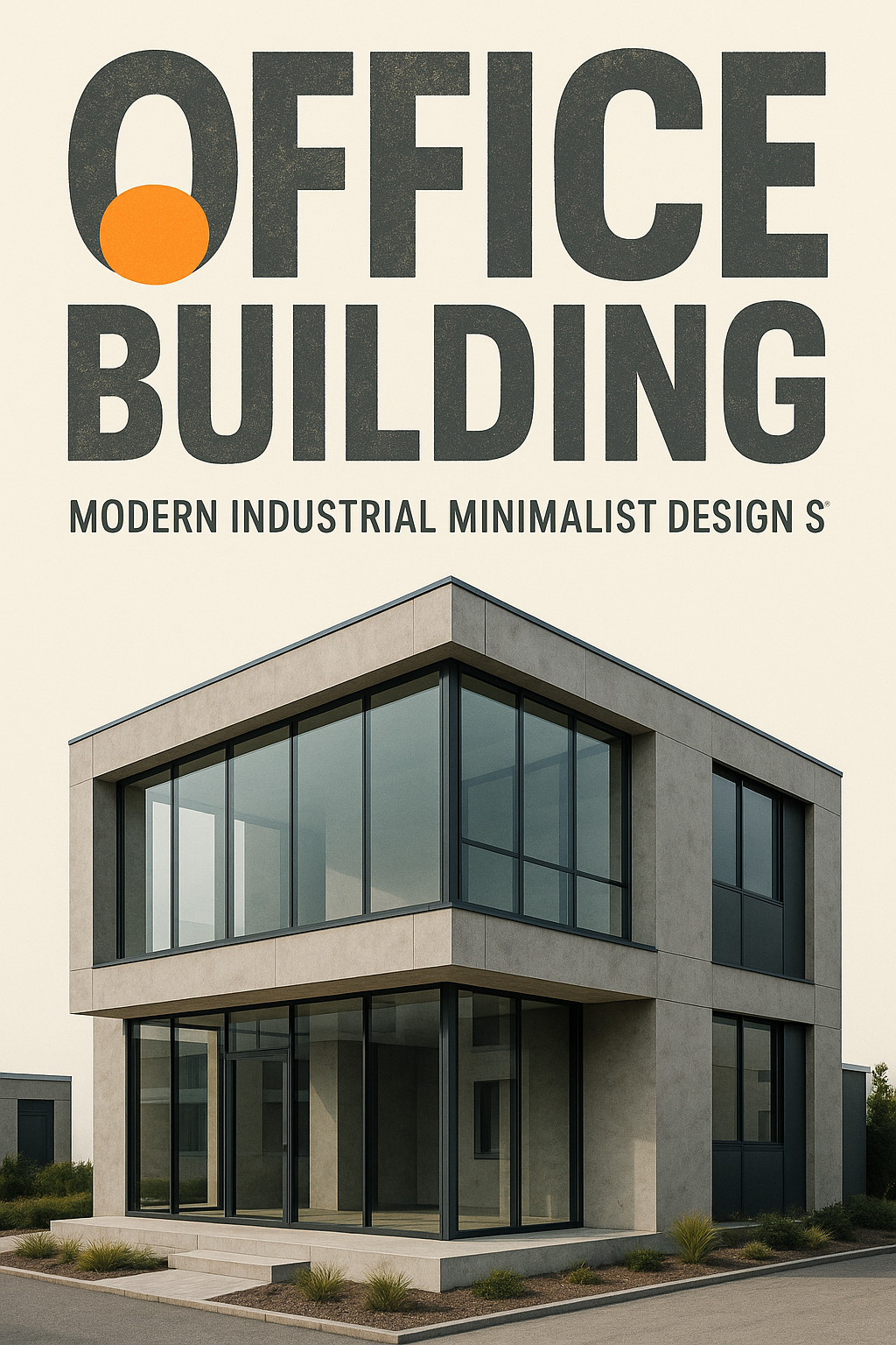Architectural image showcasing a modern office building featuring industrial minimalist design elements. Ideal for architecture and design presentations.