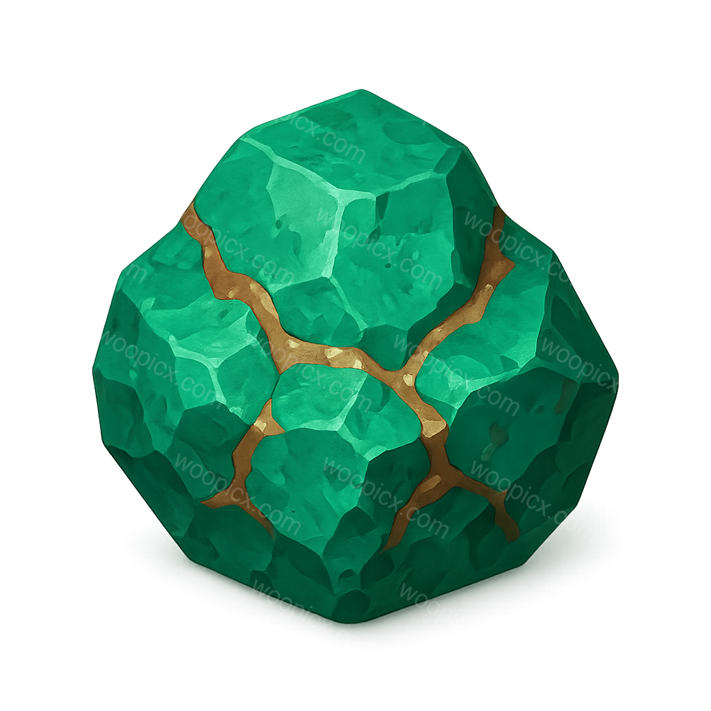 /Premium/Collection: /by davooda/Type: PNG/A stylized 3D icon of copper ore, featuring a green rock with golden veins. The icon has a transparent background and is presented in a three-quarter isometric view, showcasing its volumetric design.