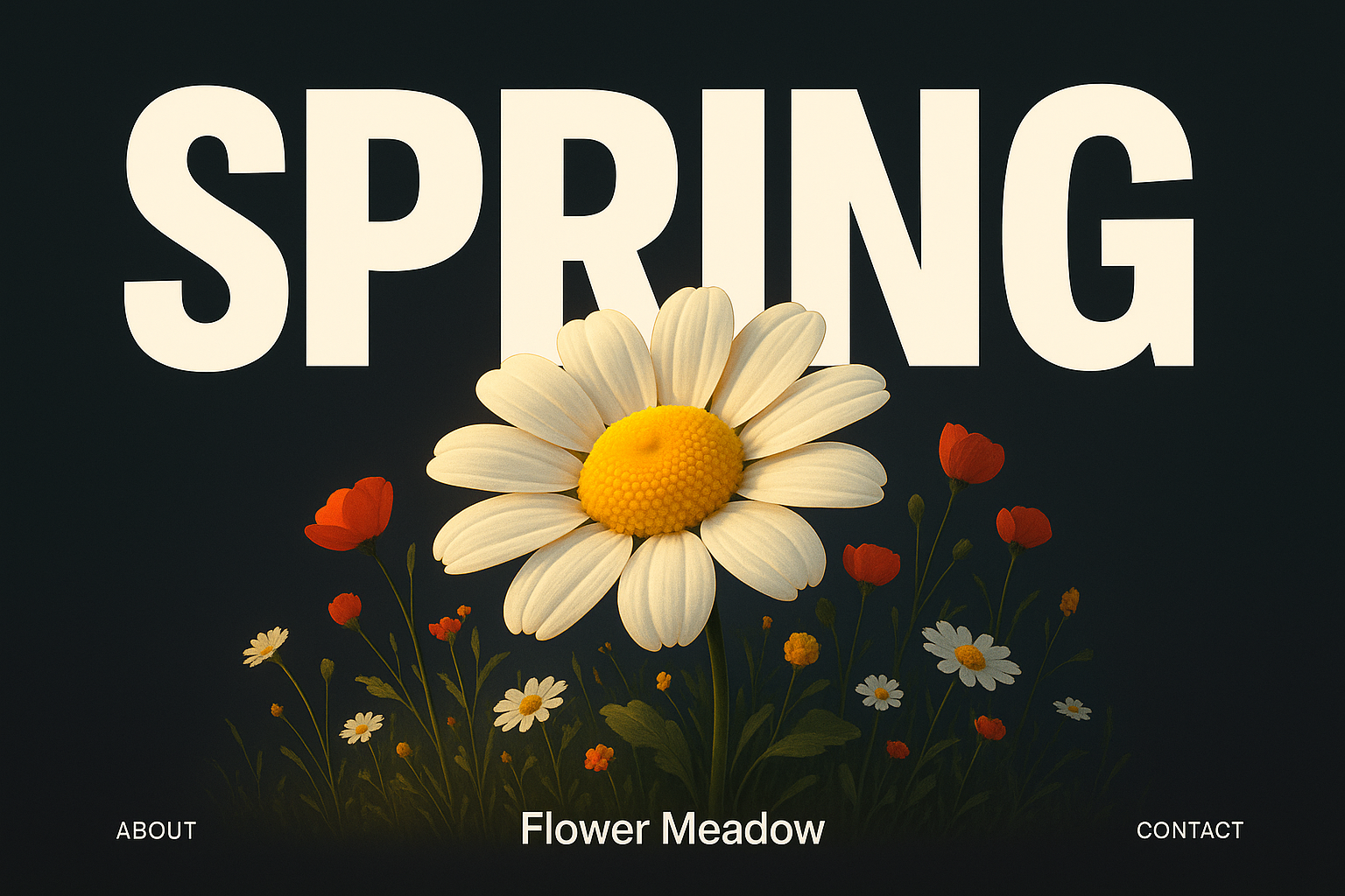 /Collection: /by davooda/Type: PNG/A striking illustration of a flower meadow in spring, featuring a large daisy and vibrant blooms against a dark gradient background. The bold typography enhances the modern, cinematic feel.