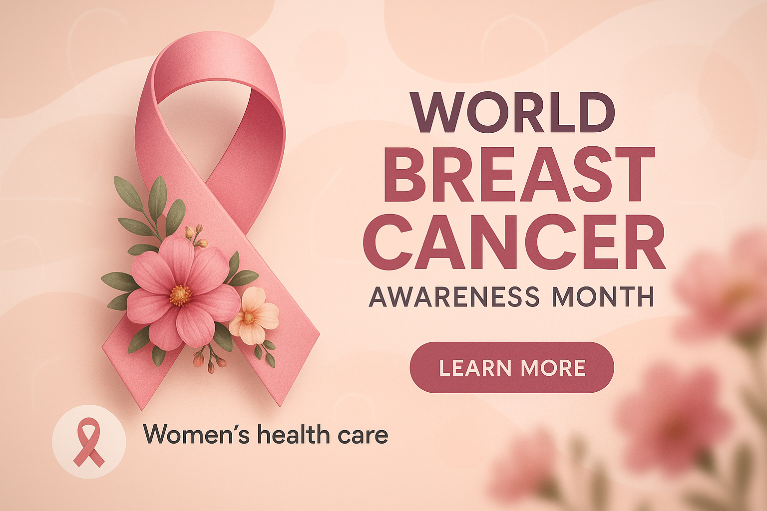 /Collection: /by davooda/Type: PNG/A visually appealing graphic for Breast Cancer Awareness Month featuring a pink ribbon and floral elements, ideal for health campaigns and social media awareness posts.