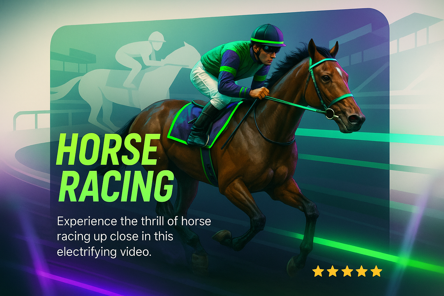 Dynamic Horse Racing Promotional Graphic for Video Content