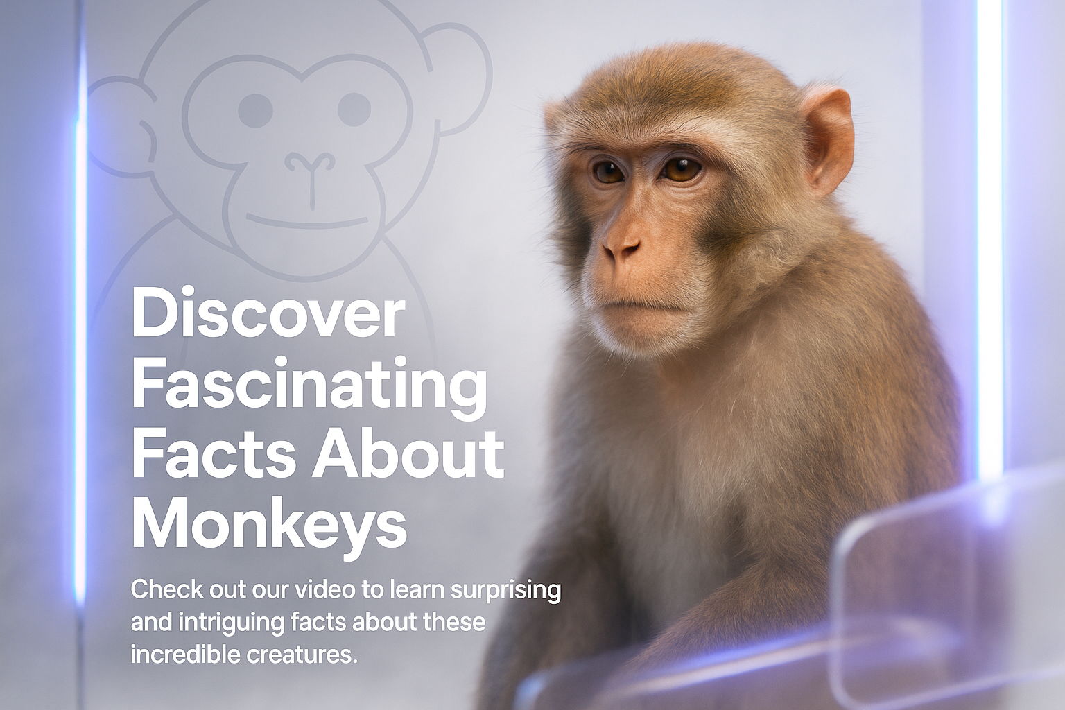 Visually appealing social media post highlighting fascinating facts about monkeys. The design includes an engaging monkey image and a call-to-action for video content.