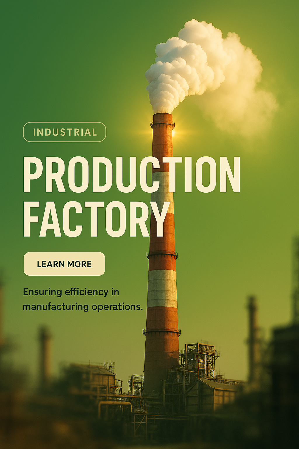 Industrial Production Factory Image with Smokestacks and Efficiency Focus