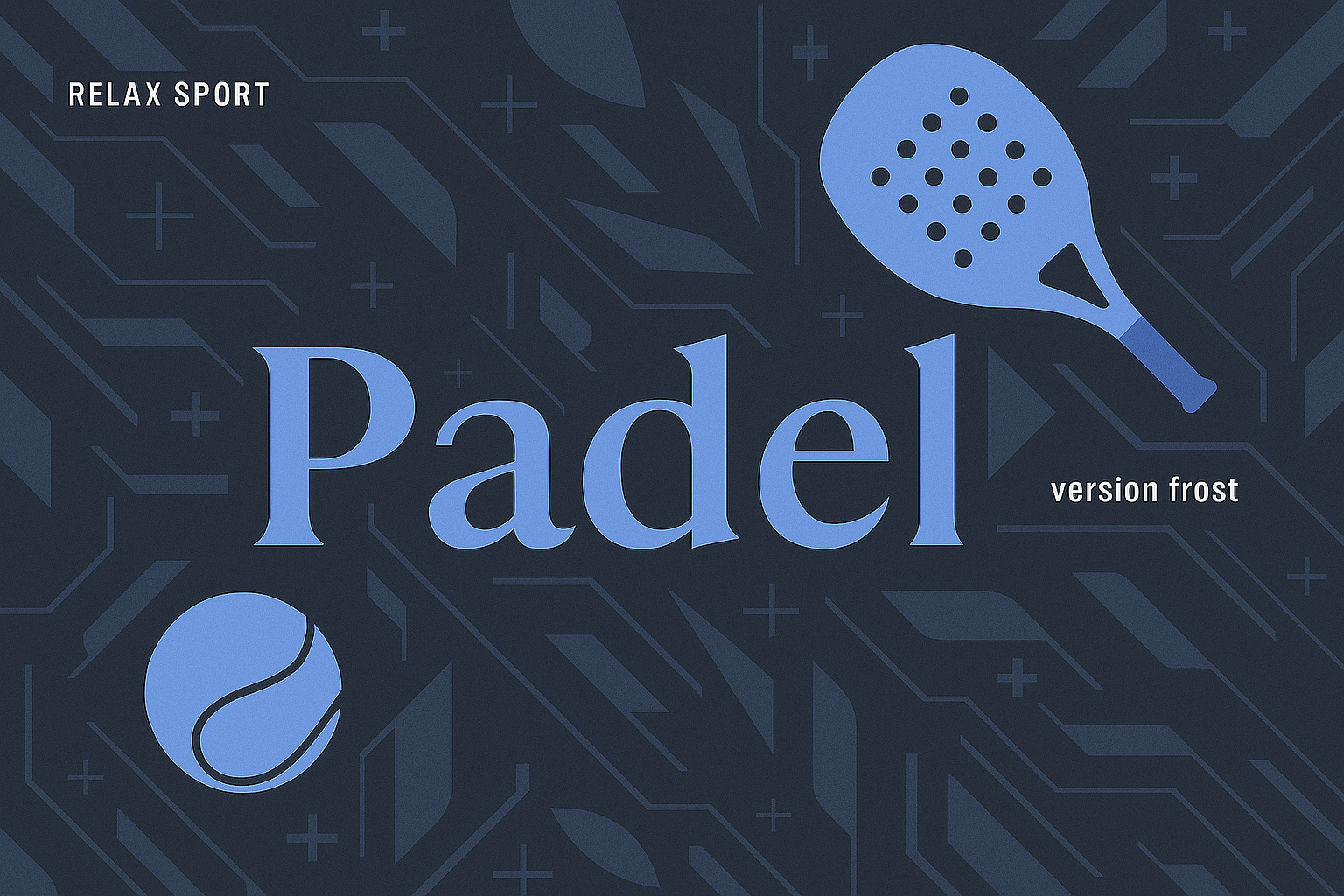 /Collection: /by davooda/Type: PNG/A sleek and modern design featuring the word 'Padel' in a stylish font, set against a dark background with tech-inspired graphics. Includes a padel racket and ball illustration.
