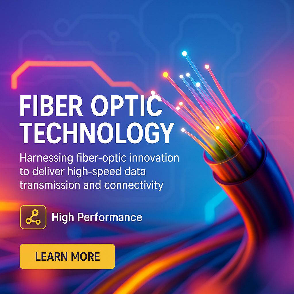 Vibrant promotional graphic showcasing fiber optic technology with dynamic colors and modern design elements, ideal for tech-focused marketing campaigns.