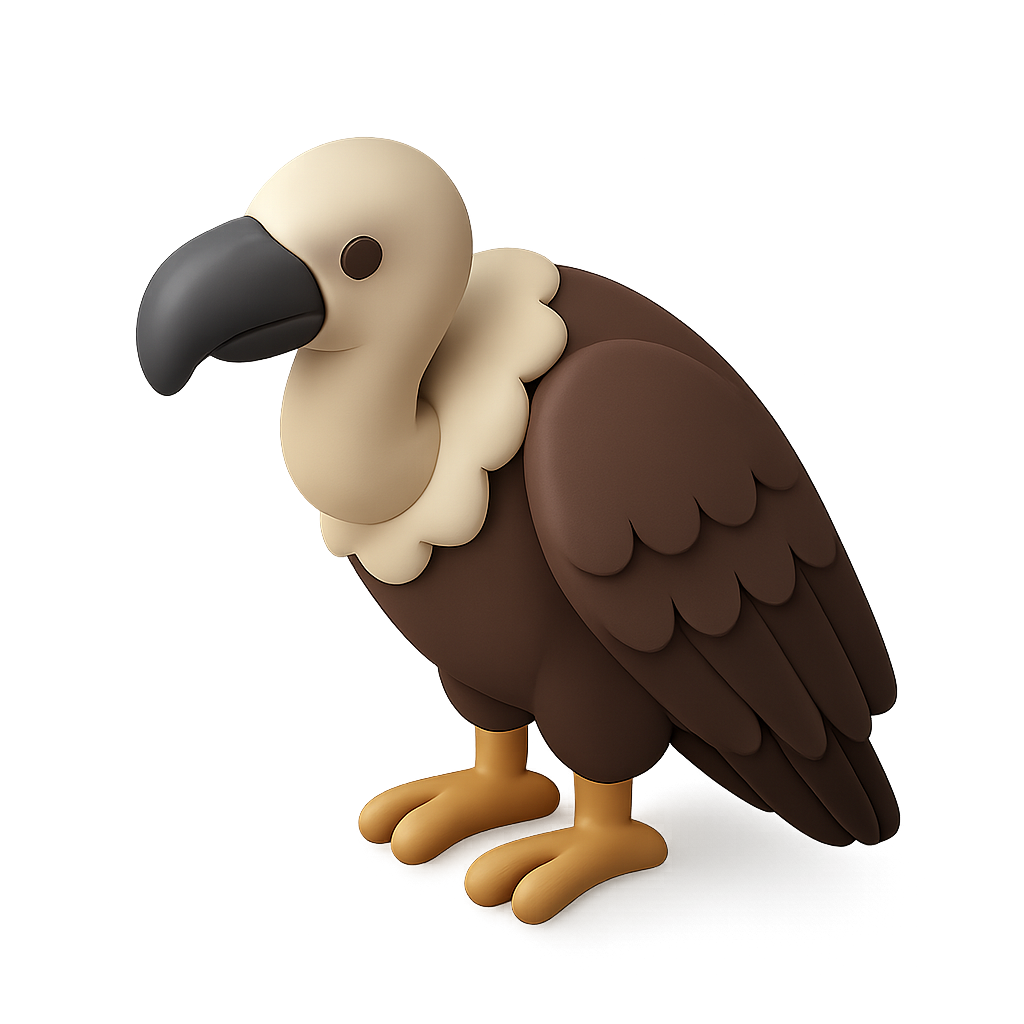 A playful and stylized cartoon representation of a vulture, featuring smooth shapes and a warm color palette. Ideal for children's books or educational materials.