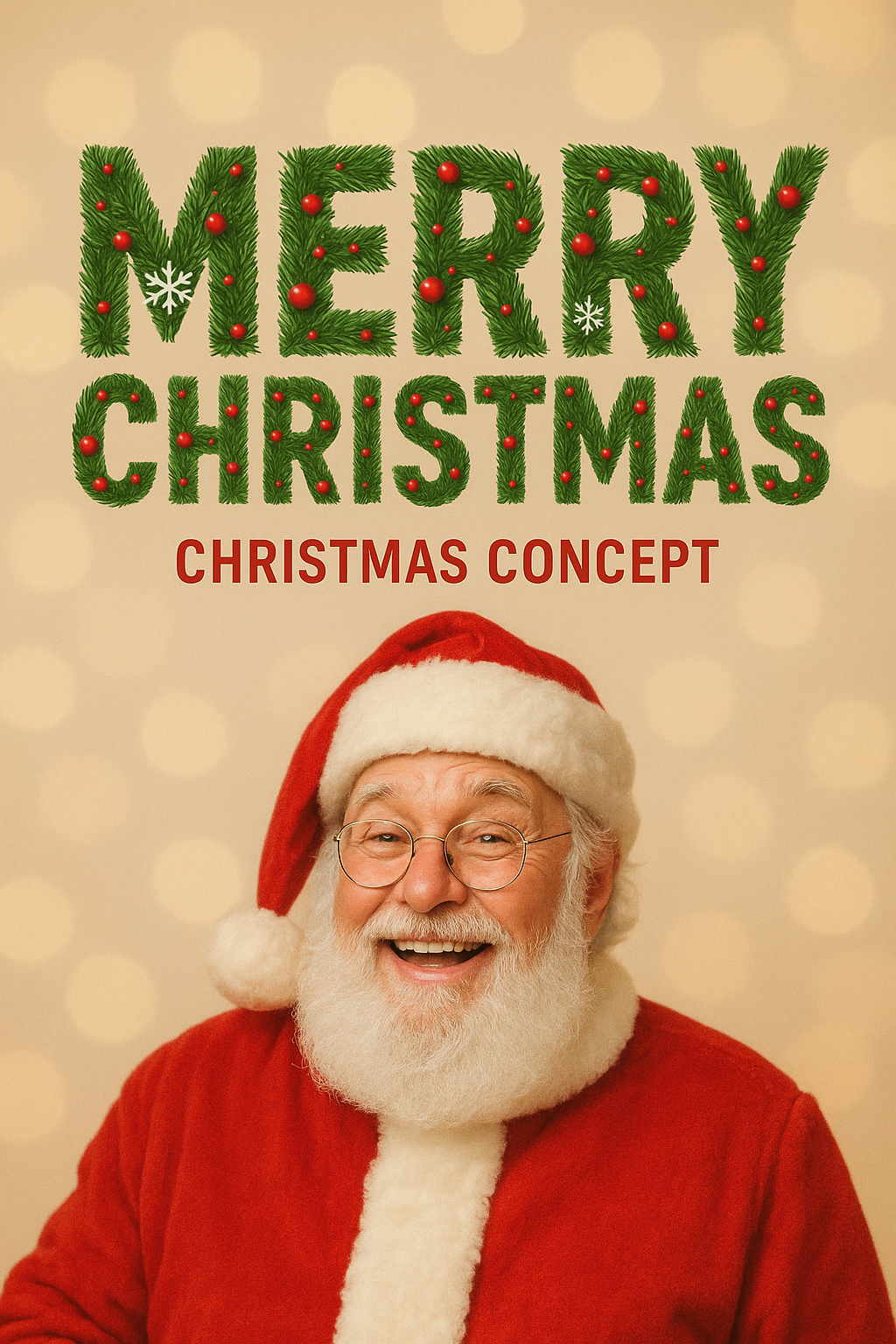 Dynamic 3D Christmas Scene with Santa Hat and Text