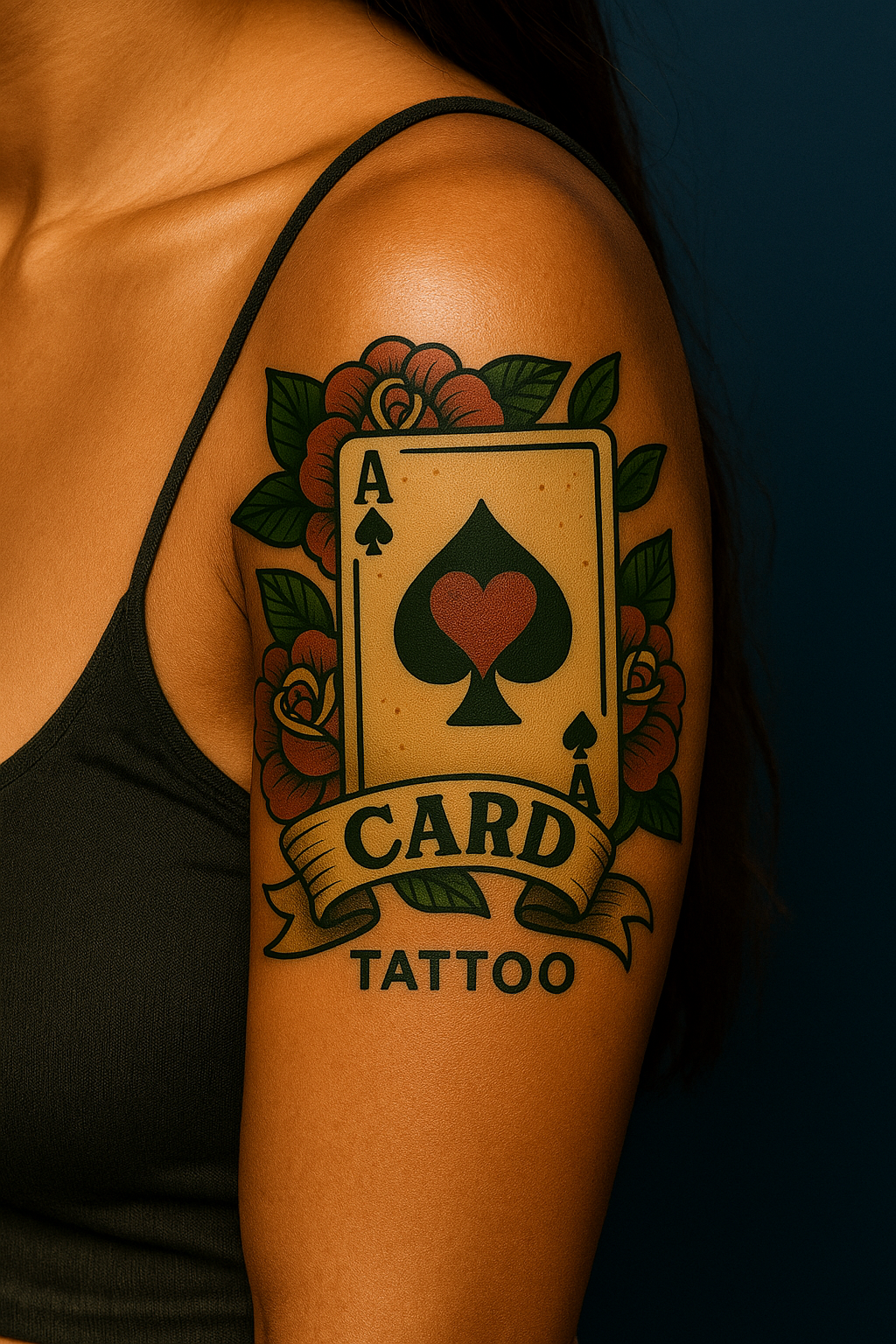 Illustrative Tattoo Art Featuring a Woman with Playing Cards
