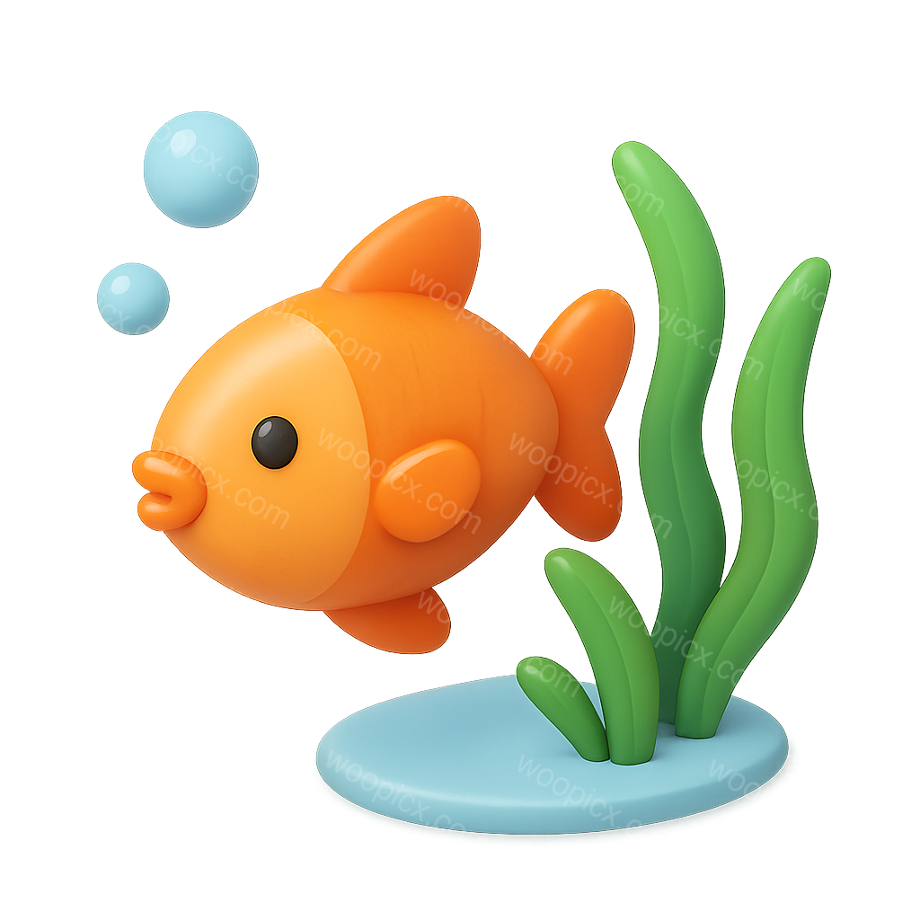 Colorful 3D Fish Icon with Bubbles and Plants