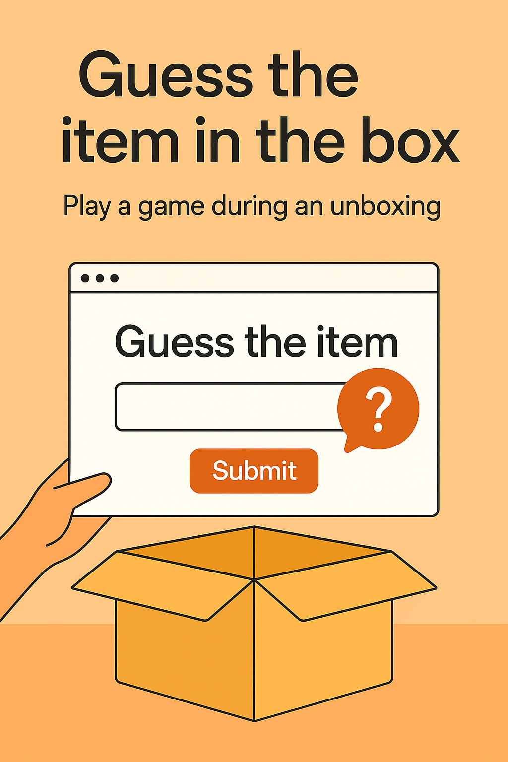 Engaging social media graphic promoting a guessing game during an unboxing experience, featuring a playful design with bright colors and an inviting layout.