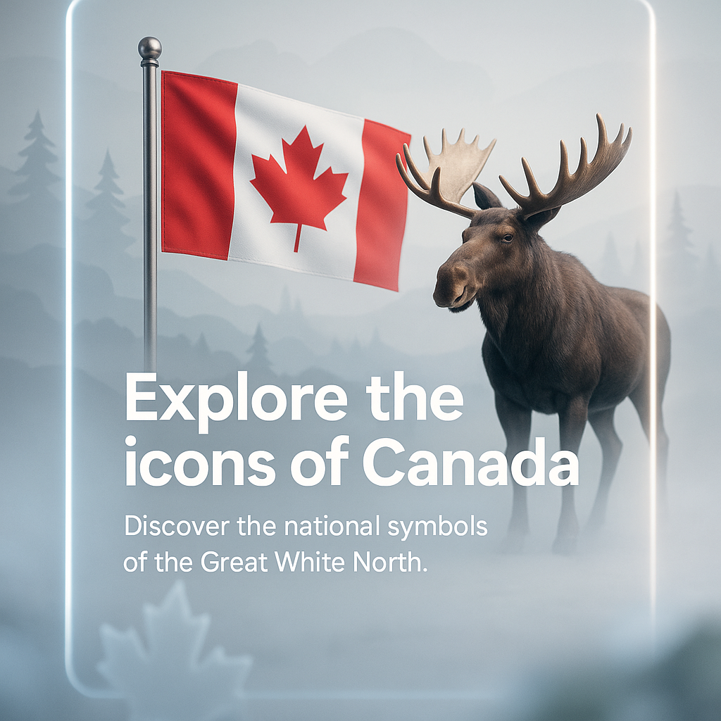 /Collection: /by davooda/Type: PNG/A visually striking digital illustration showcasing a moose alongside the Canadian flag. This image emphasizes Canada’s national symbols with a soft background, making it ideal for educational content or promotional materials.