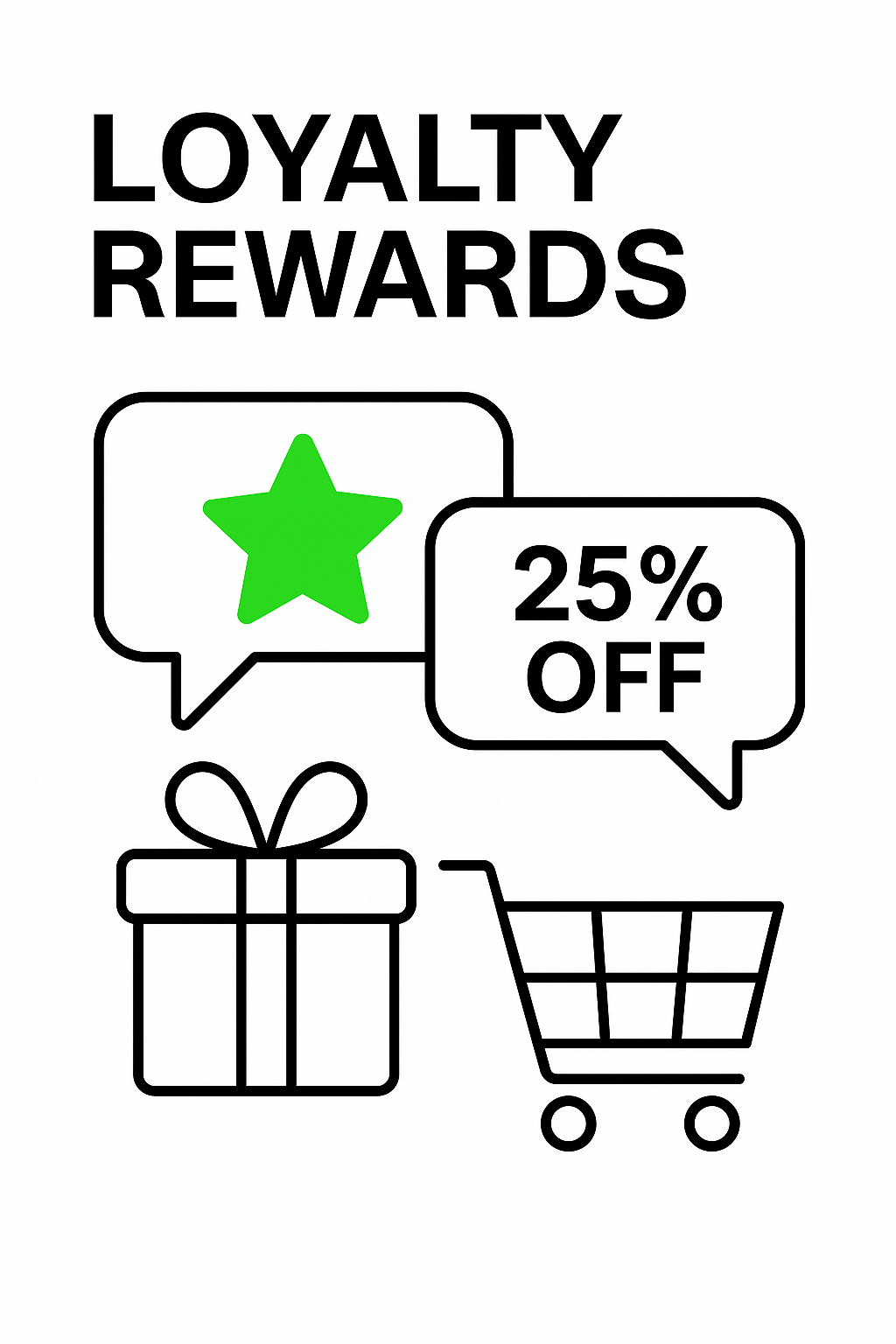 Simple promotional graphic highlighting a loyalty rewards program with a discount offer, featuring minimalistic design elements ideal for marketing purposes.