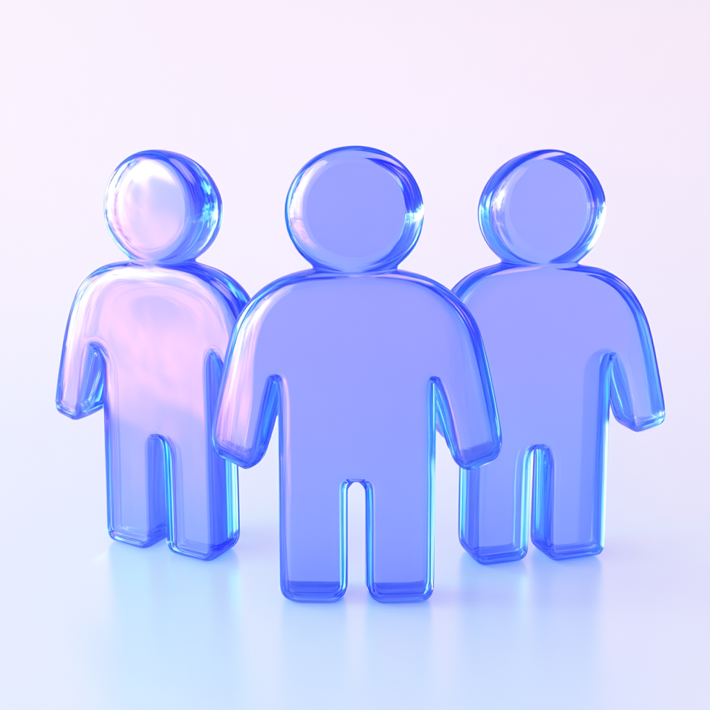 /Collection: /by davooda/Type: PNG/3D graphic featuring stylized transparent figures symbolizing community or teamwork. The smooth design and pastel colors create a modern aesthetic suitable for digital platforms.