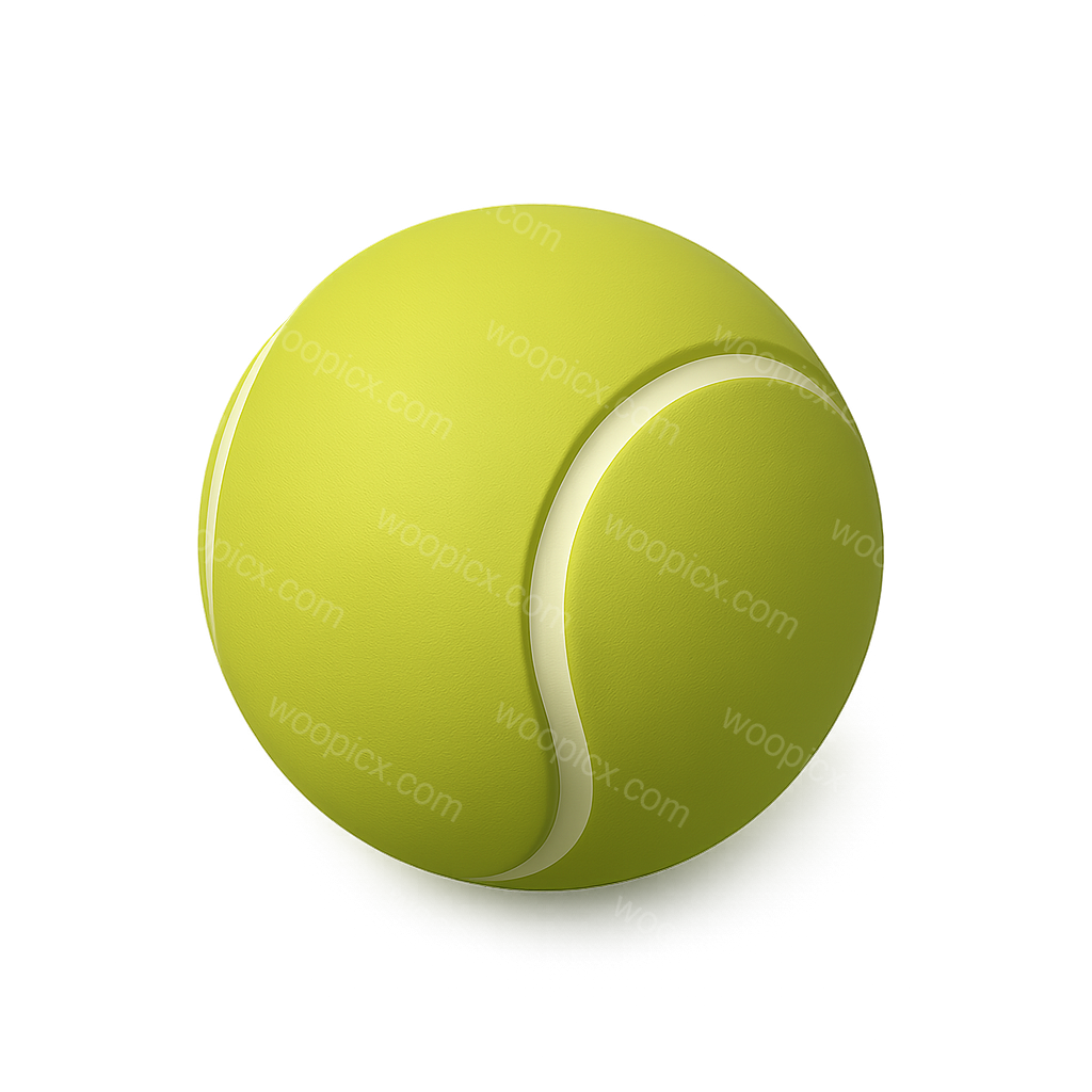 A vibrant 3D tennis ball icon showcasing a sleek design with a three-quarter view. The ball is bright green, featuring a smooth texture and a white seam, set against a soft gradient background.