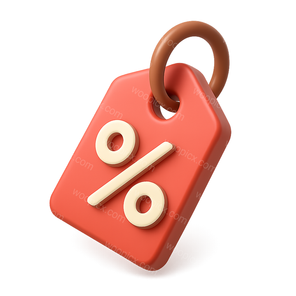 Stylish 3D Discount Tag Icon with Percentage Symbol