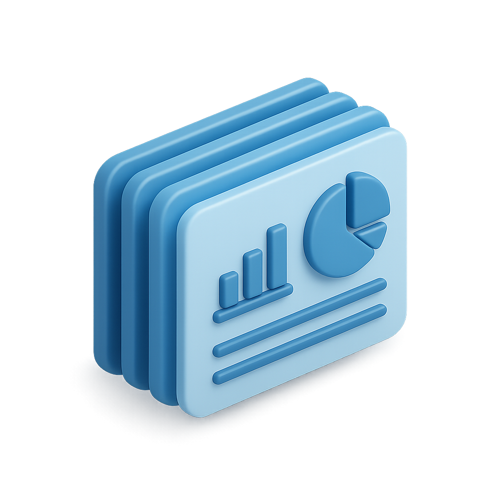 3D Document Icon with Graphs and Pencil Design