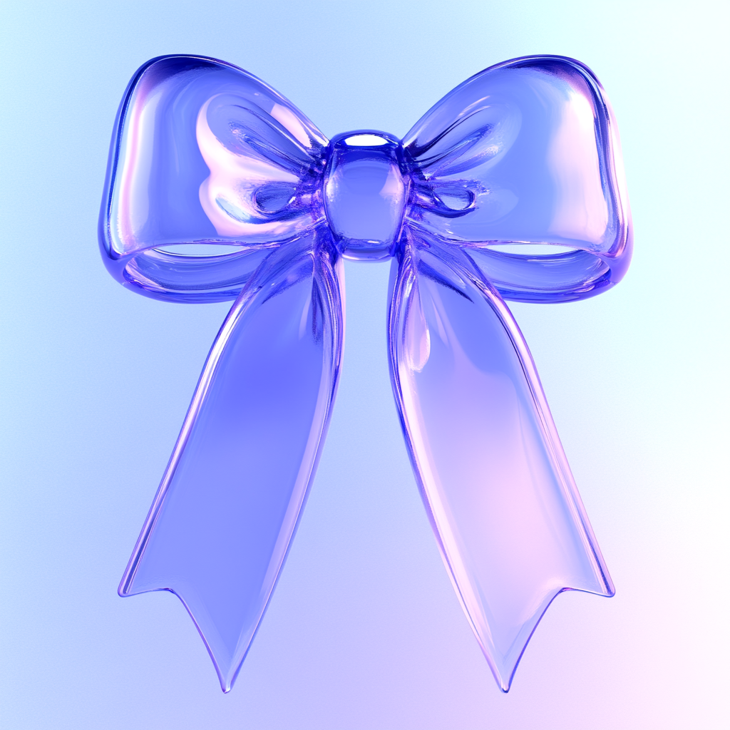 A beautifully rendered translucent purple bow, showcasing a smooth and glossy finish. Ideal for use in gift wrapping, branding, or decorative elements in digital media.