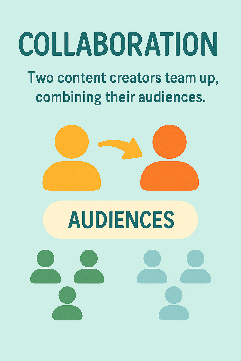 /Collection: /by davooda/Type: PNG/An illustrative infographic depicting the concept of collaboration between two content creators, highlighting audience sharing. Ideal for social media or educational content.