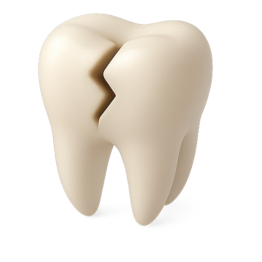 A stylized 3D representation of a broken tooth, emphasizing dental health concerns. This graphic is suitable for educational content or dental marketing.