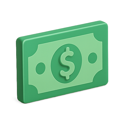Stylized 3D Stack of Banknotes Icon with Transparent Background