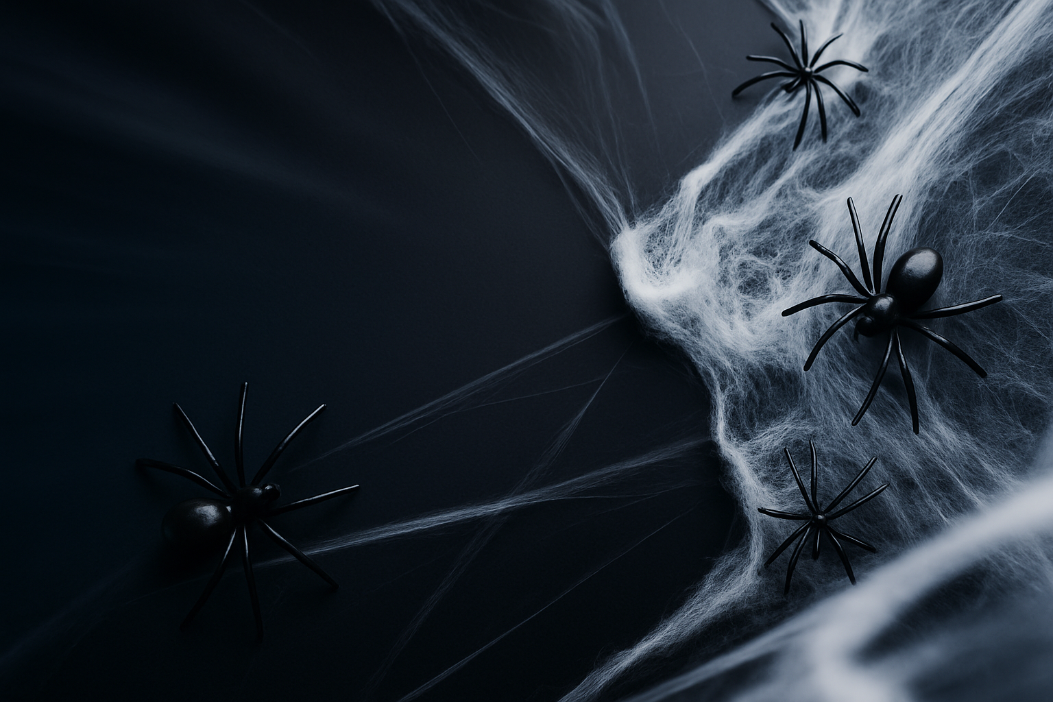 Dynamic Halloween Flat Lay with Spiders and Webs