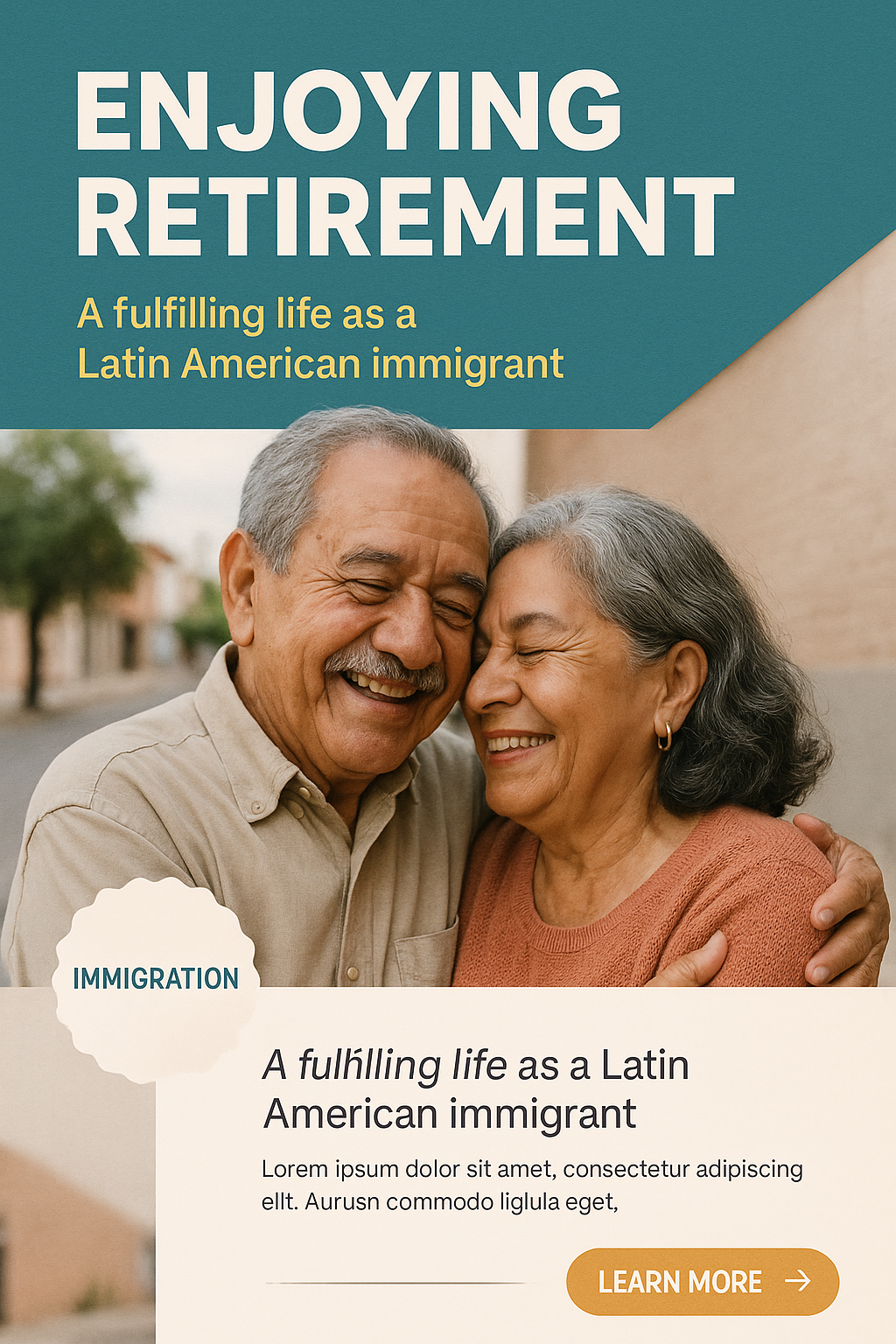 /Collection: /by davooda/Type: PNG/An elderly Hispanic couple shares a heartfelt moment outdoors, showcasing their love and joy in retirement. The vibrant setting reflects their fulfilling life as Latin American immigrants.