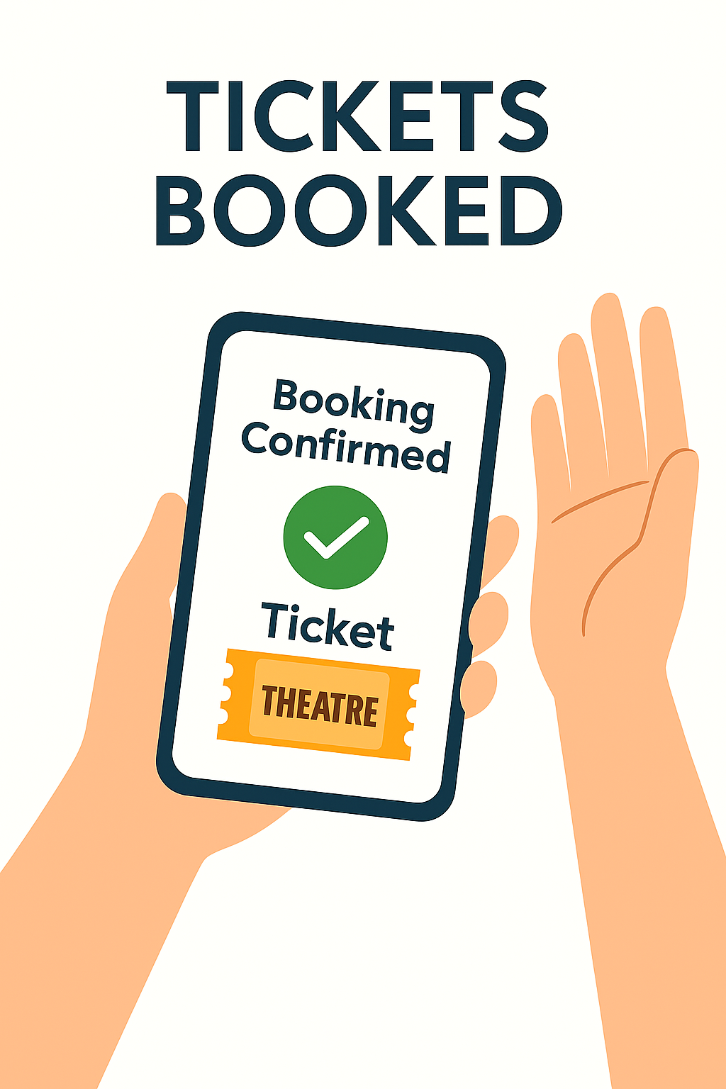 /Collection: /by davooda/Type: PNG/Stylized graphic depicting a digital ticket confirmation on a mobile device, ideal for promoting theatre bookings or events. The design is modern and visually appealing.