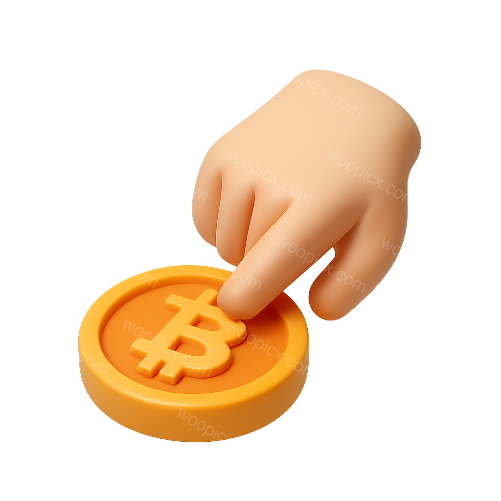 3D Hand Touching a Bitcoin Icon with Isometric Design