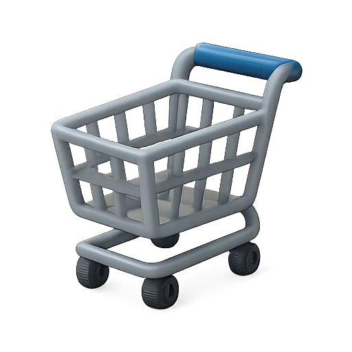 A 3D rendered shopping cart icon, designed with a modern aesthetic. Ideal for e-commerce websites or applications, conveying a sense of retail and online shopping.