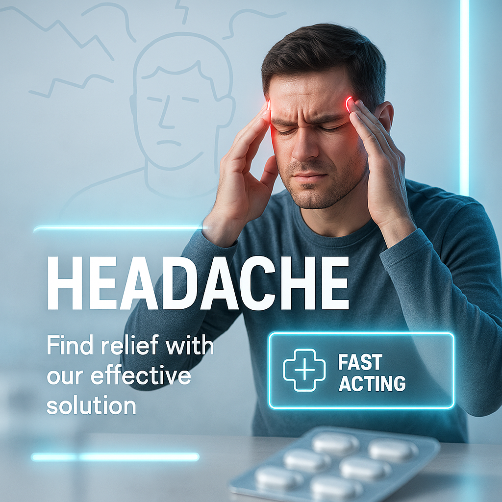 /Collection: /by davooda/Type: PNG/Engaging health promotion image featuring a person experiencing a headache, illustrating a product for relief. Ideal for advertising in healthcare or pharmaceutical contexts.
