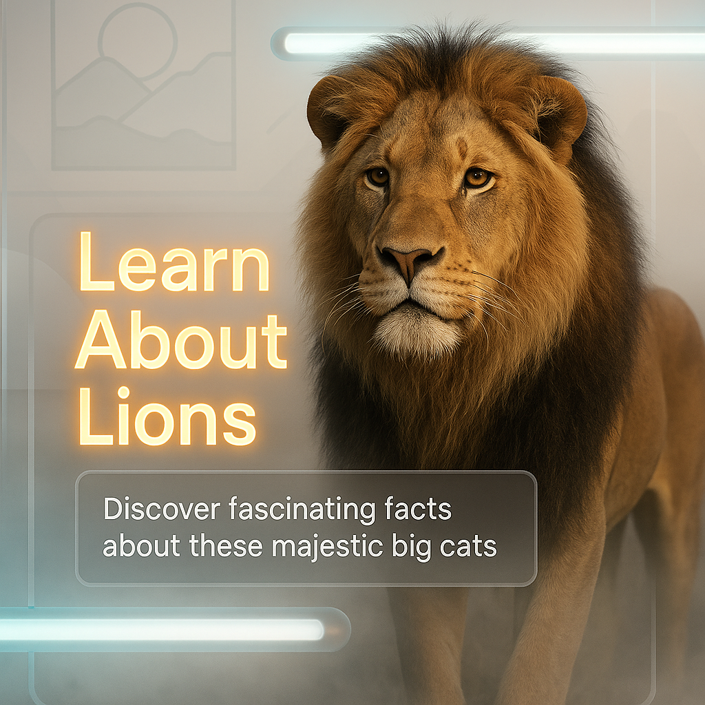 Engaging educational image showcasing a lion, aimed at raising awareness about big cats. The design combines modern aesthetics with informative text.