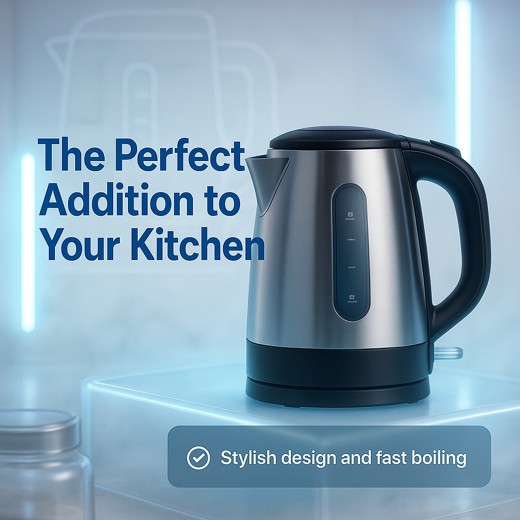 /Collection: /by davooda/Type: PNG/A visually appealing product showcase featuring a sleek electric kettle, designed to attract kitchen appliance buyers. The modern aesthetic enhances its appeal for promotional use.