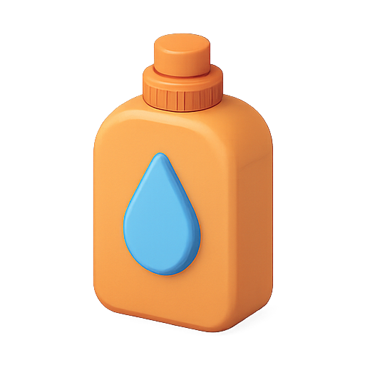A stylized 3D illustration of an orange liquid container featuring a blue drop motif, suitable for product design showcases or packaging concepts.