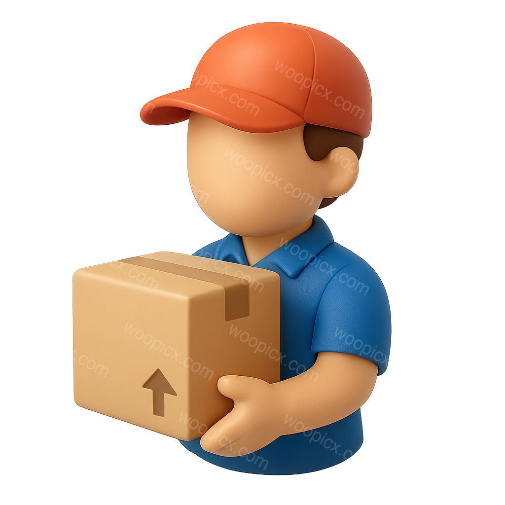 /Premium/Collection: /by davooda/Type: PNG/A visually appealing 3D icon depicting a delivery person holding a package. The character is in a three-quarter view, showcasing a vibrant color scheme, perfect for digital applications.