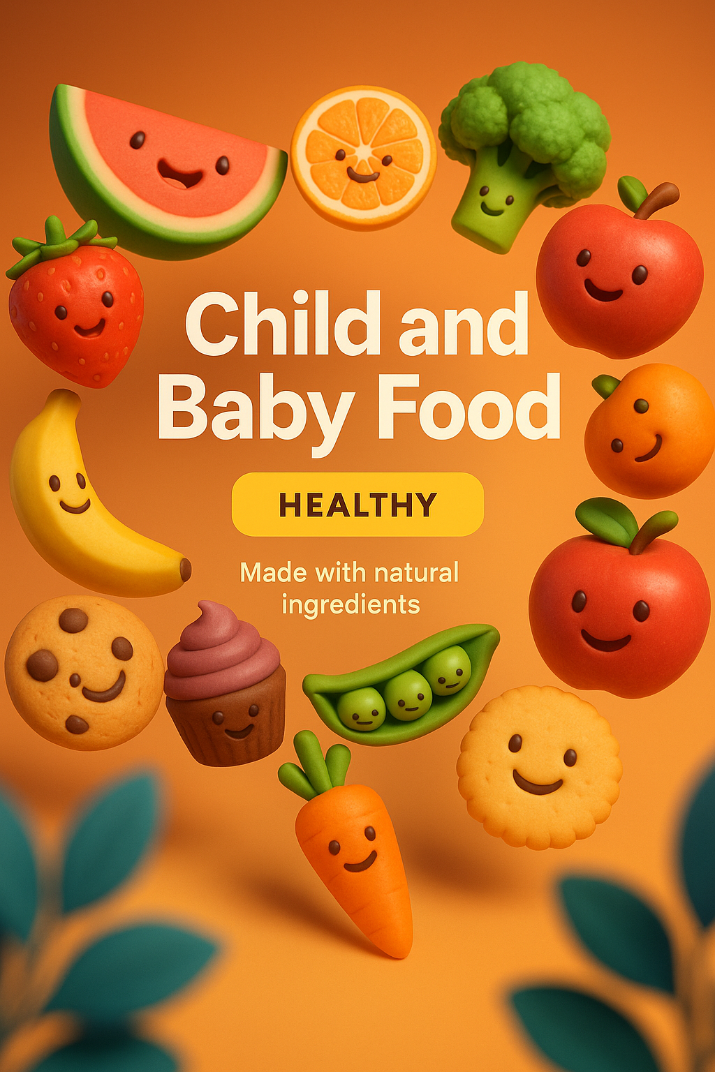Colorful Child and Baby Food Graphic Featuring Healthy Ingredients