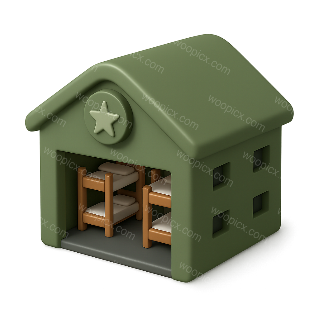 Stylized 3D Barracks Icon with Star Emblem