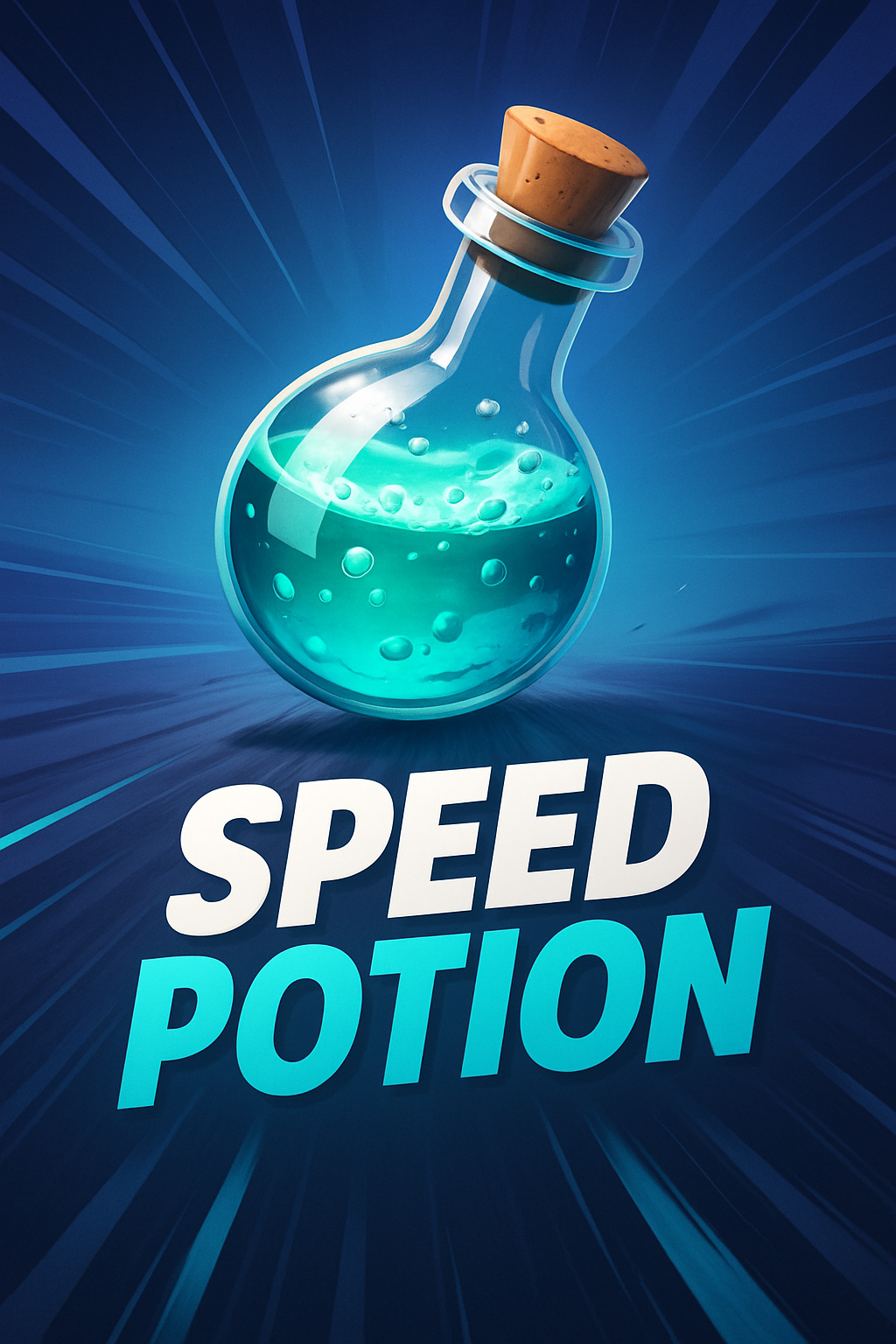 /Collection: /by davooda/Type: PNG/A vibrant illustration of a speed potion in a glass vial, surrounded by dynamic lines radiating outward. The title 'SPEED POTION' is prominently displayed in bold, engaging typography against a smooth gradient background.