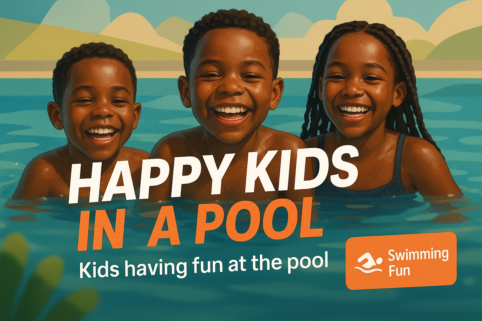 Vibrant image of happy children enjoying a sunny day in a pool, perfect for promoting family fun and summer activities.