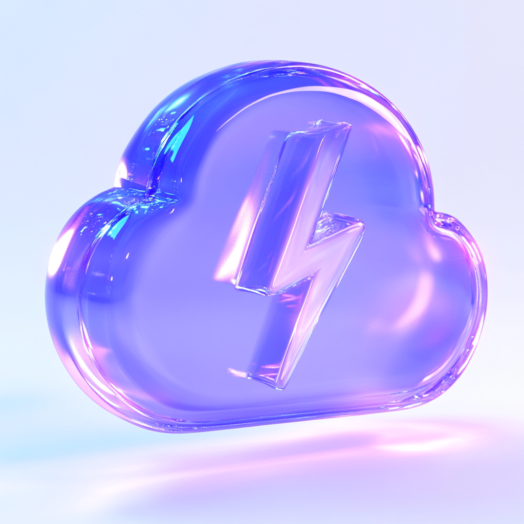 A modern 3D graphic representing a cloud with a lightning bolt, featuring a sleek and glossy finish. Ideal for tech-related projects or app icons.