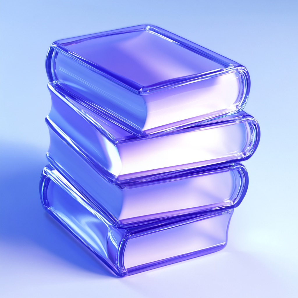 A modern and artistic representation of a stack of transparent purple books, ideal for educational or literary themes in branding or digital content.