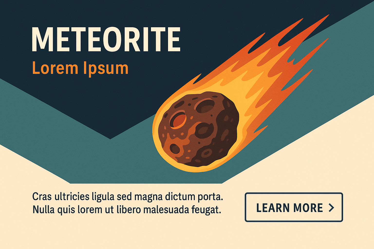 /Collection: /by davooda/Type: PNG/A visually striking design featuring a meteorite in motion, layered with geometric shapes and vibrant colors. The composition includes a prominent 'Learn More' button.