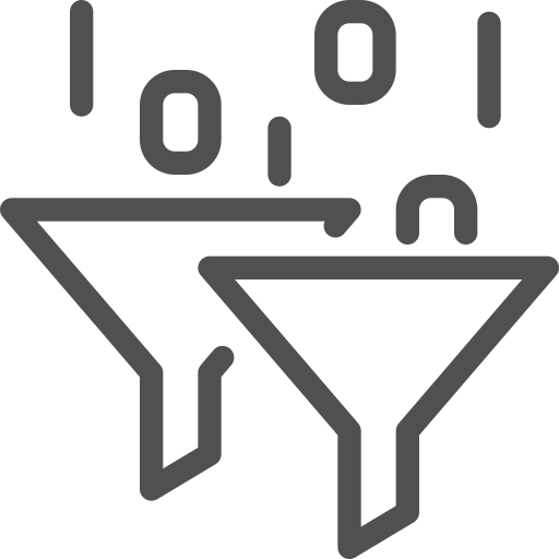 outline simple icon: binary, data flow, data funnel, data management, data processing