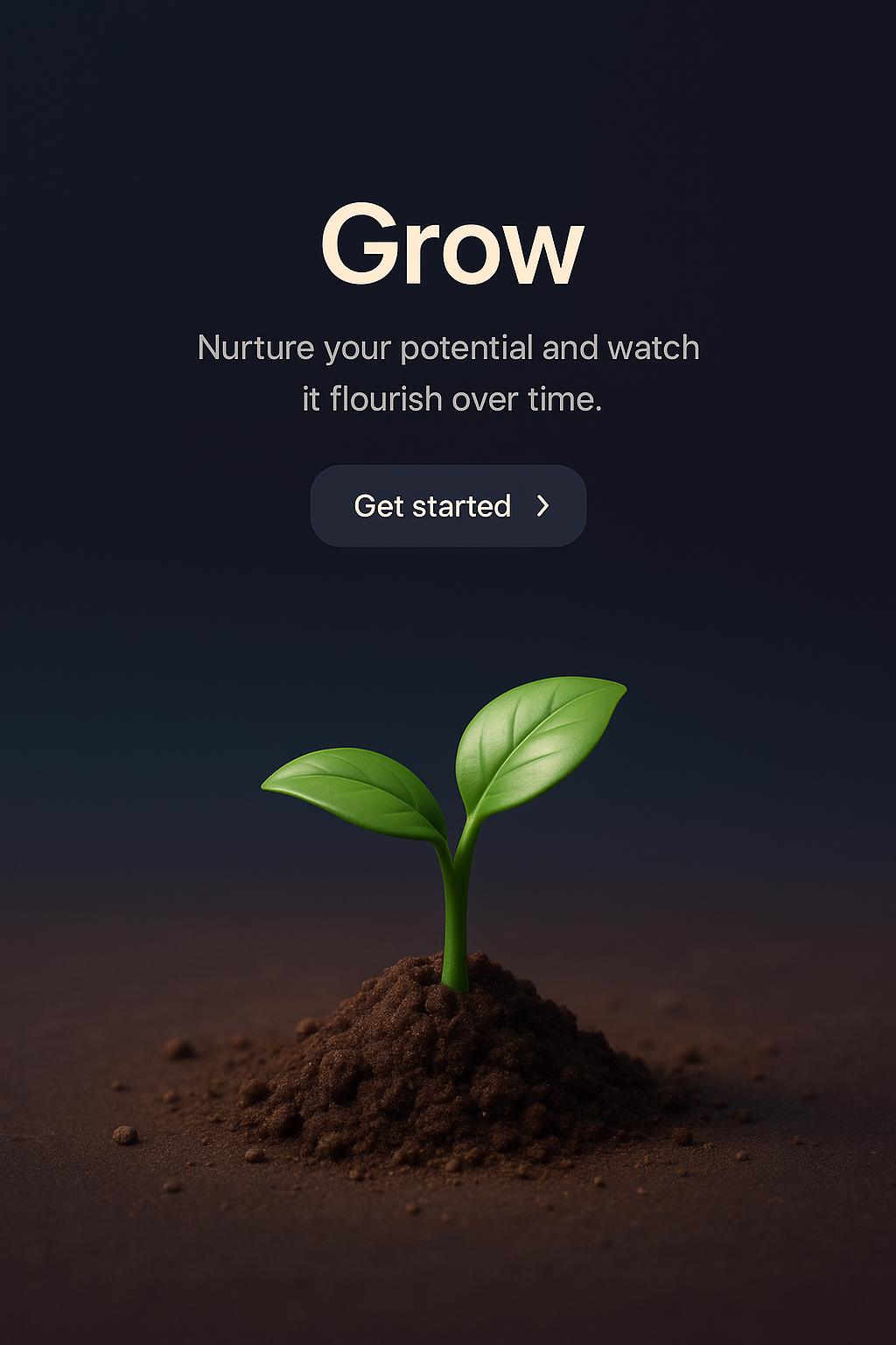 /Collection: /by davooda/Type: PNG/A realistic 3D illustration of a small plant emerging from dark soil, set against a smooth gradient background. The design includes a prominent title and a call-to-action button.