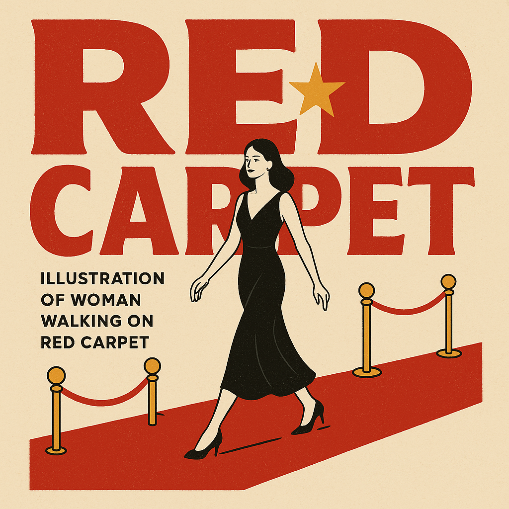 /Collection: /by davooda/Type: PNG/A creative illustration depicting a woman elegantly walking on a red carpet, showcasing a minimalist design style. Ideal for event promotions or fashion-related content.