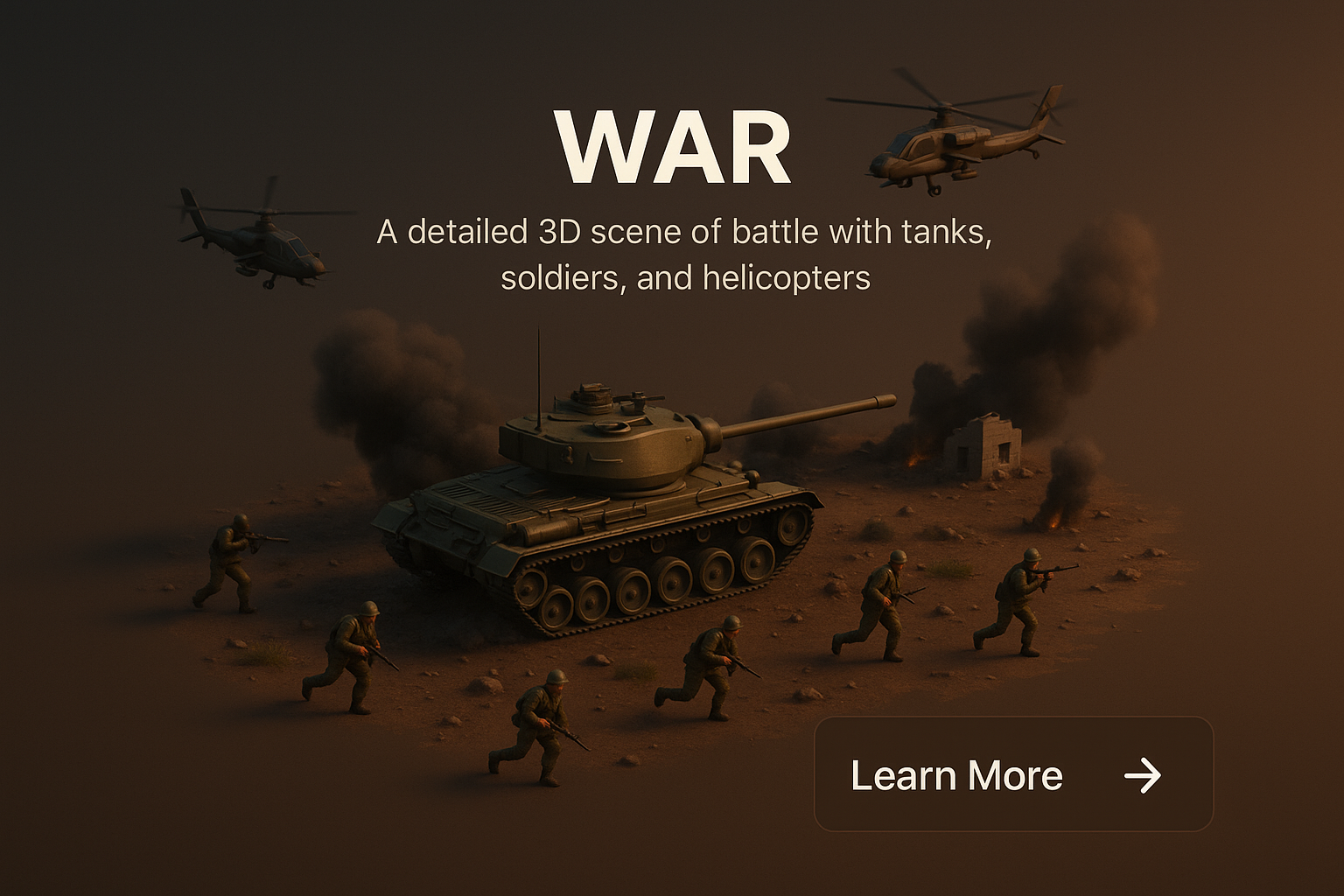 Detailed 3D Scene Illustrating War with Realistic Elements