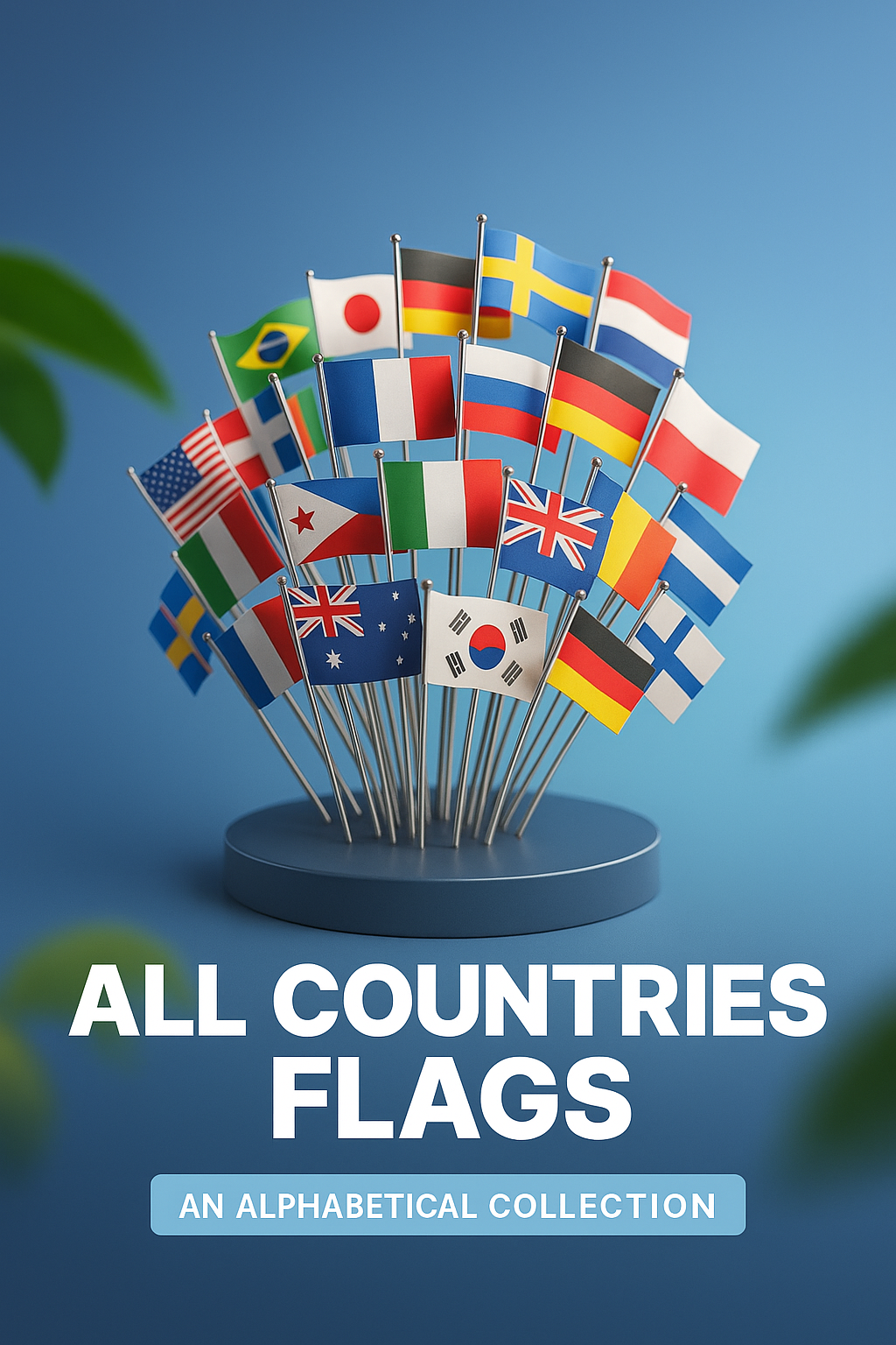 A vibrant 3D display of flags from various countries, arranged in an eye-catching manner on a simple gradient backdrop. The title is bold and clear, enhancing visibility.
