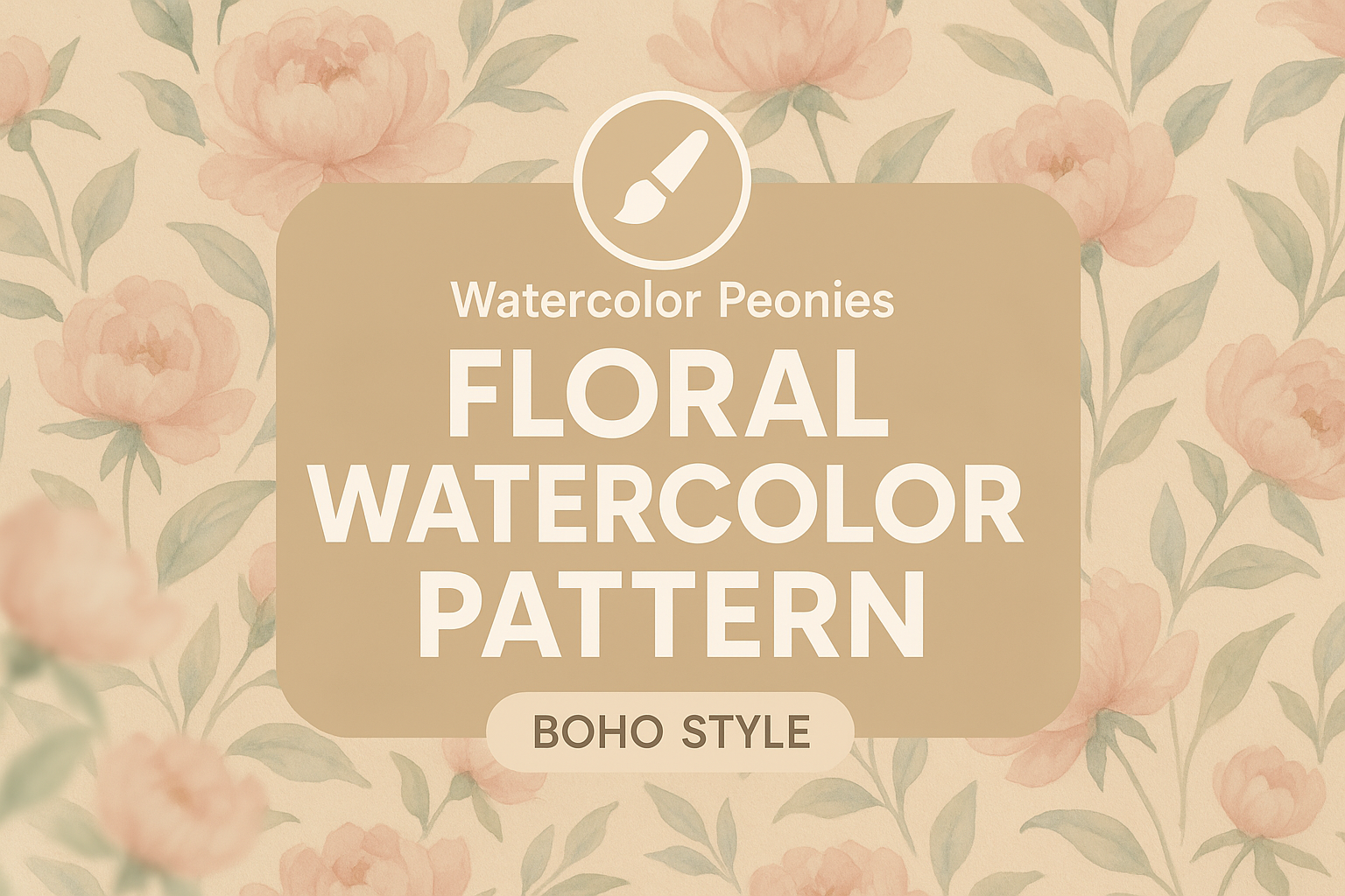 Floral Watercolor Pattern with Peonies in Boho Style